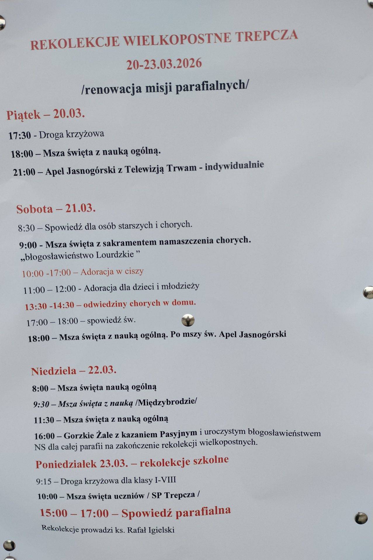 Rekolekcje Wielkopostne Trepcza 20-23.03.2026